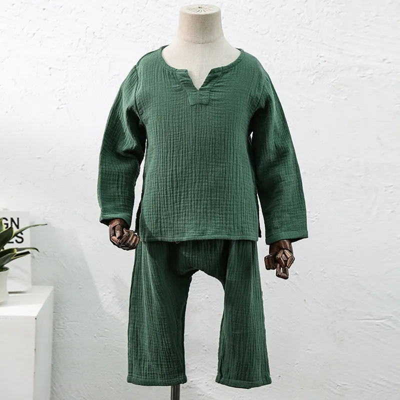 Children's Crepe Cotton Home Wear Suit Solid Color Two-piece Set