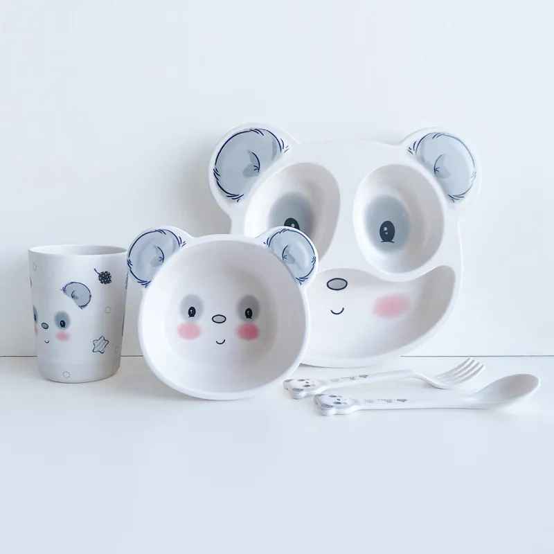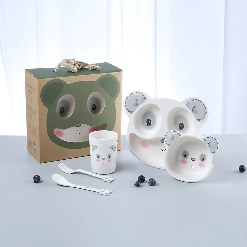 Name: 5-piece set of bamboo fiber tableware for children