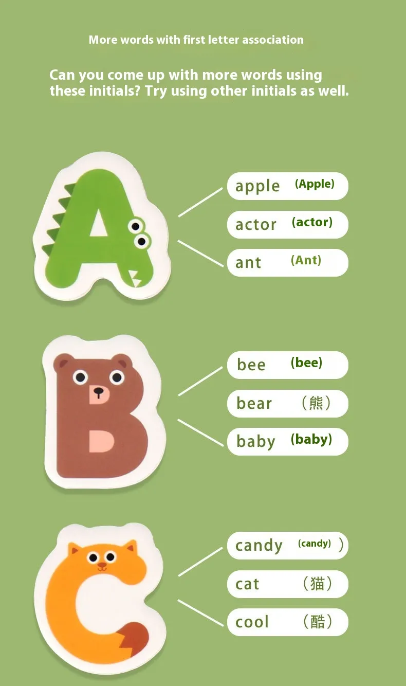 Supports recognition of English letters, basic spelling, and early reading skills, building a strong foundation for language learning.