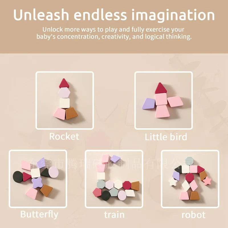 Color: Silicone geometric puzzle mixed color yellowish brown, silicone geometric puzzle mixed color pink