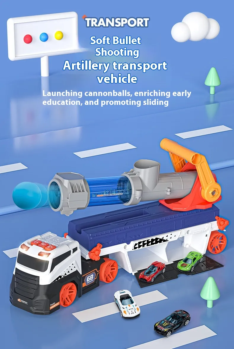 The Children's Launch Missile Truck Deformation Track Car Transport Catapult Shell Car is an exciting and action-packed toy designed to provide children with hours of fun, adventure, and imaginative play. Combining the thrill of missile launchers, track cars, and transforming vehicles, this toy allows kids to engage in dynamic, interactive play while enhancing their creativity, coordination, and motor skills. Perfect for children aged 3 and up, this multifunctional toy brings together exciting features like car transportation, missile launching, and vehicle transformation, offering endless entertainment and developmental benefits.