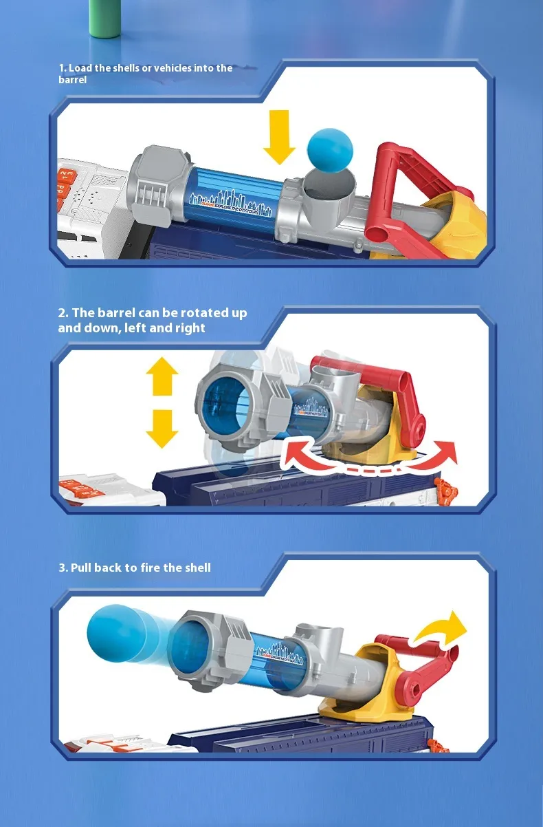 Enhances Coordination and Motor Skills: The missile launcher, track car transport, and catapult functions help improve