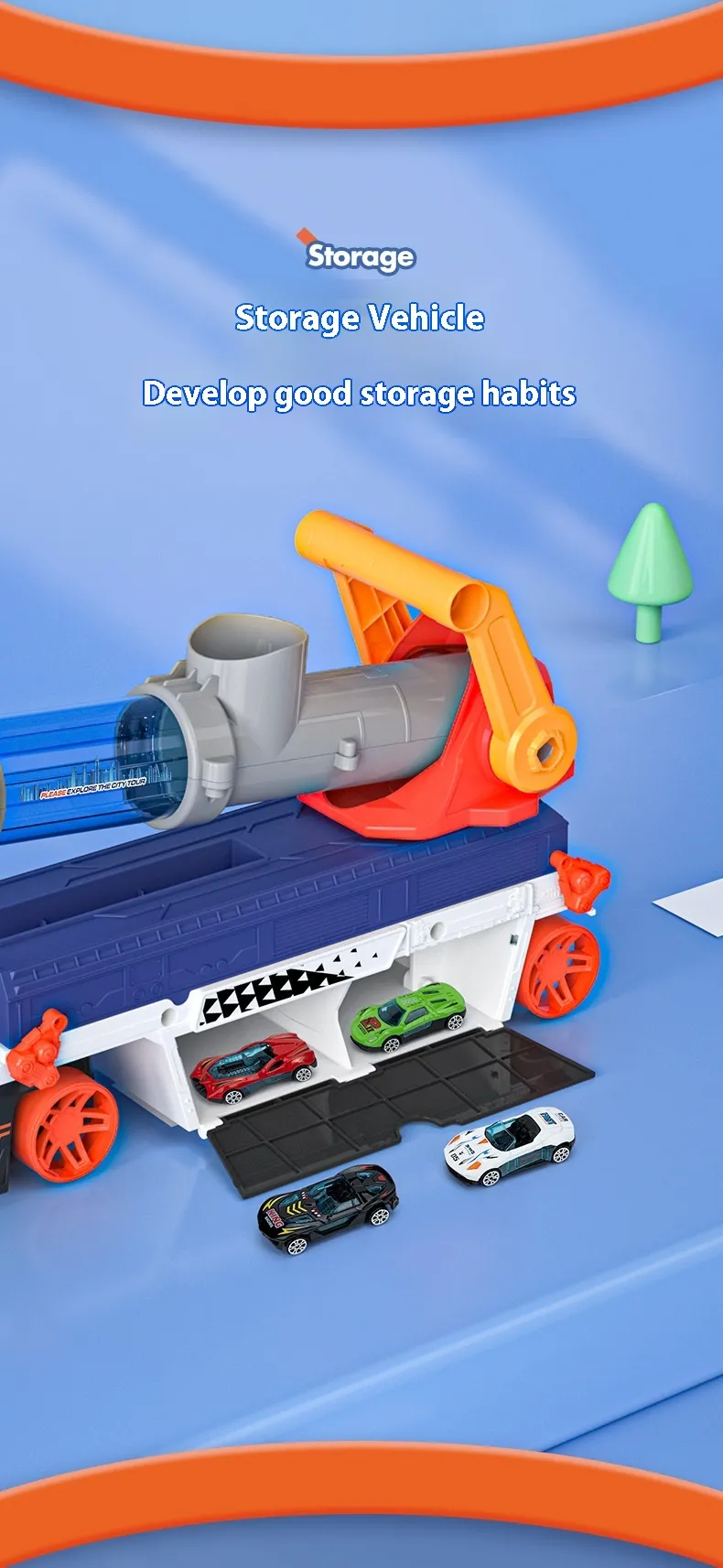 transportation and launch of the vehicles. It also helps with spatial awareness and coordination as children maneuver the car on and off the