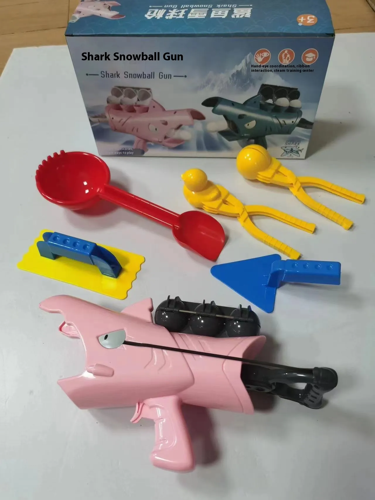 The adorable shark-themed design adds a fun and playful touch to this snowball launcher. Its vibrant colors and cute cartoon features make it a favorite among kids.