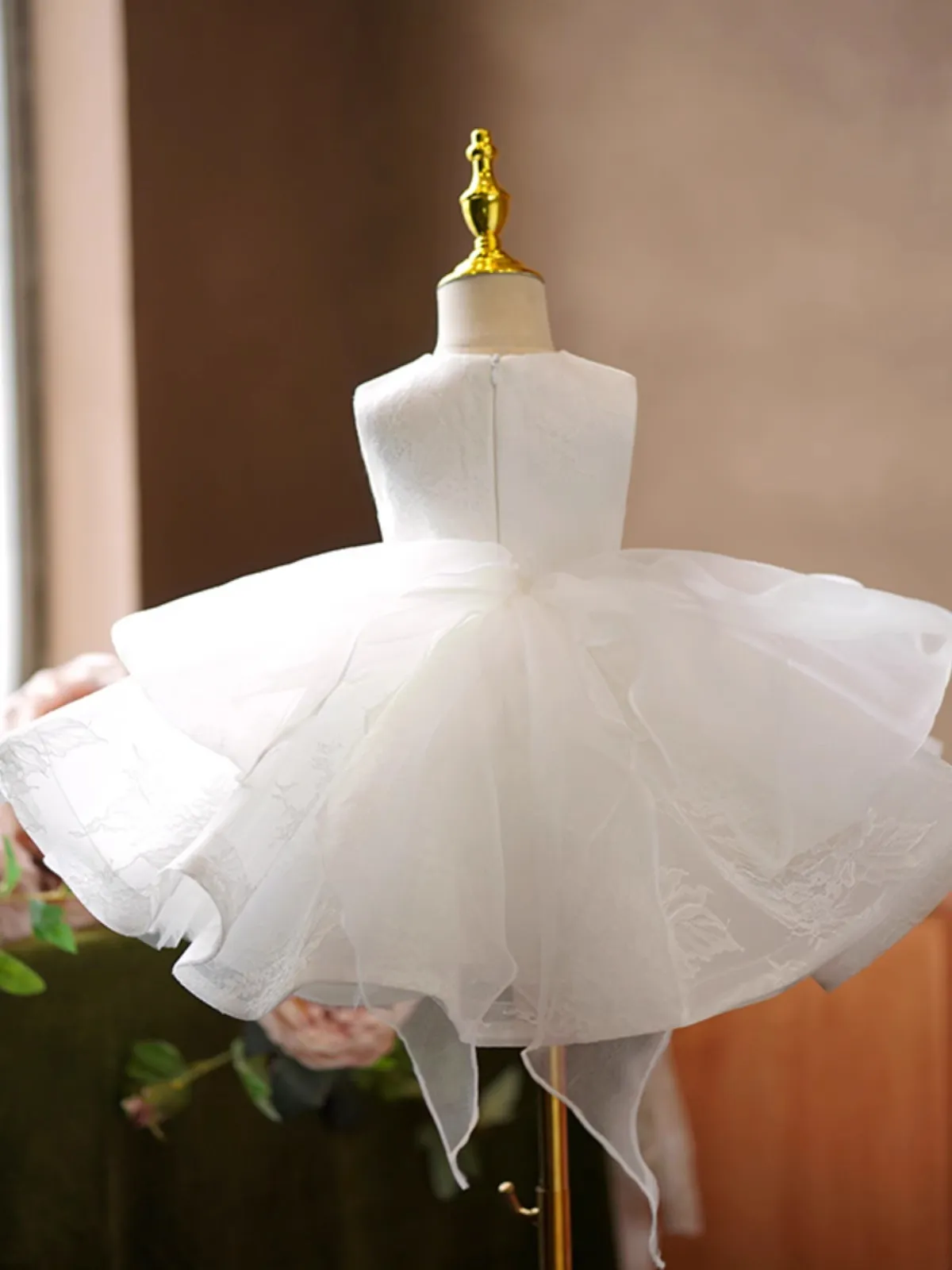 Available in a variety of timeless colours (such as pink, white, lavender, or champagne), this princess dress easily matches different themes, from weddings to birthday celebrations.