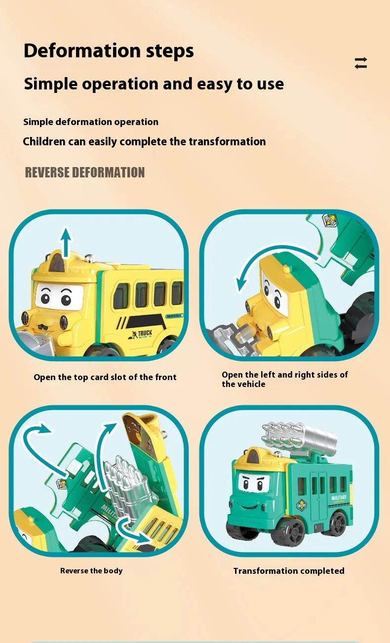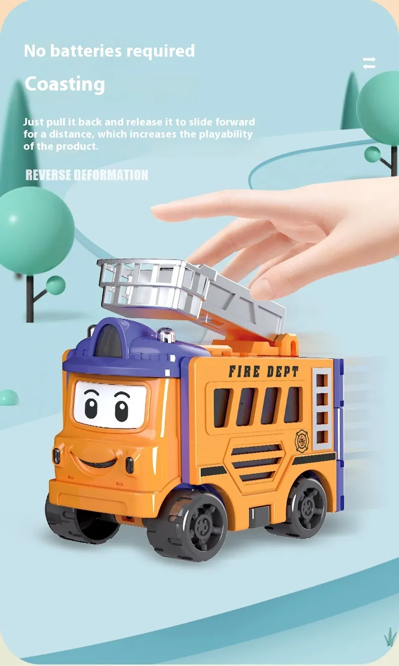 This transformation mechanism offers a sense of wonder and excitement, encouraging children to use their imagination as they create different action scenarios and stories with the toy car.