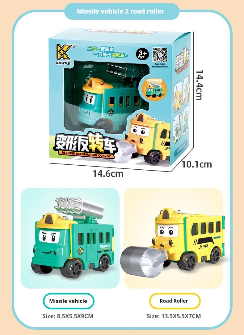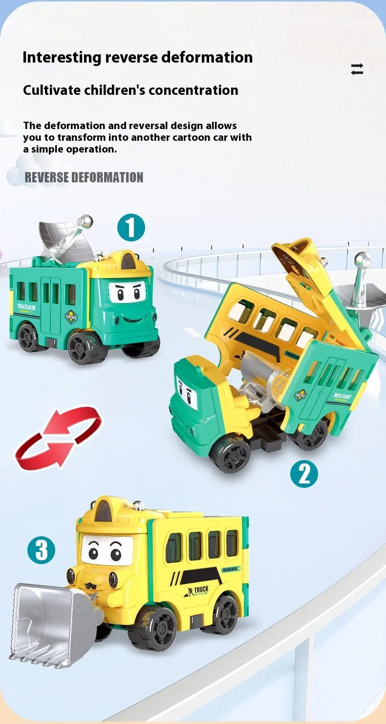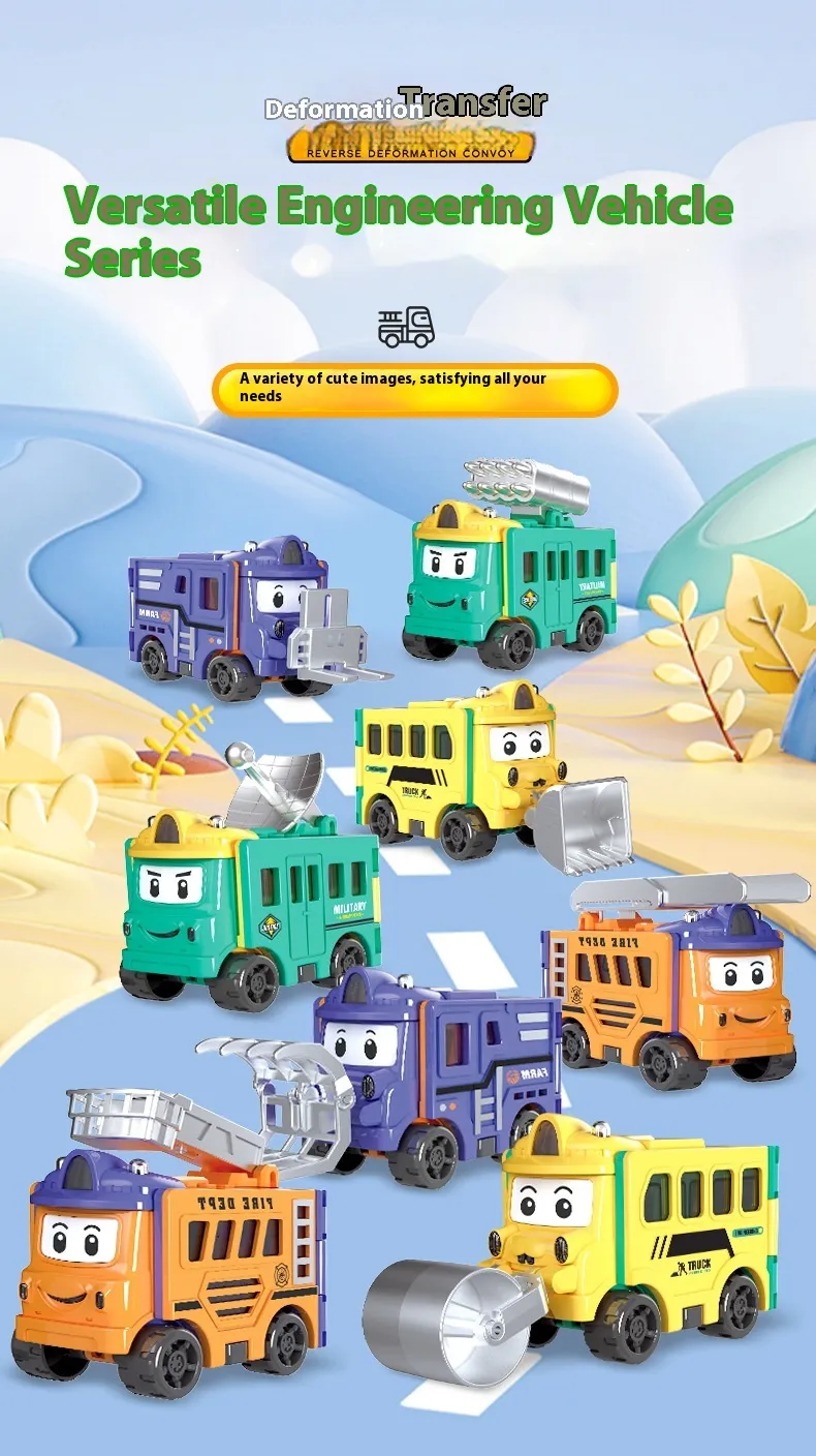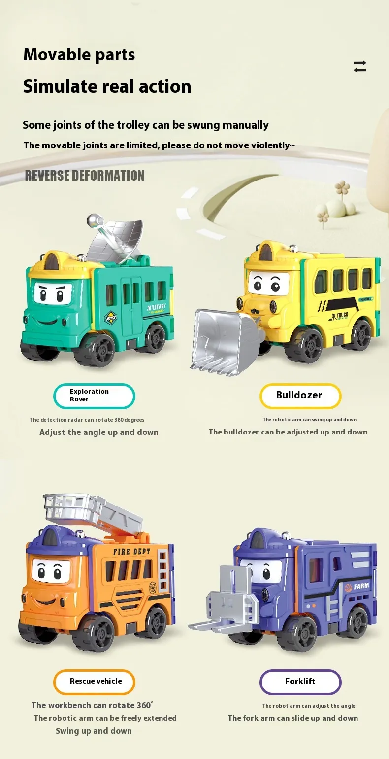 The Children's Toy Car Flip Deformation Engineering Power Control Car is designed with an engineering theme, featuring detailed elements like mechanical gears, construction vehicles, and power-control features. Children can explore and experiment with the engineering-inspired design, learning about the functions of different vehicles and how they operate. The realistic look of the car, with its moving parts and mechanical details, enhances the play experience by introducing children to concepts of engineering and mechanics in a fun, accessible way.