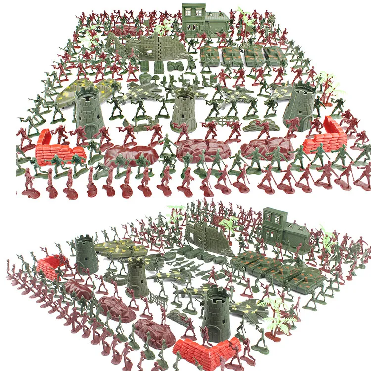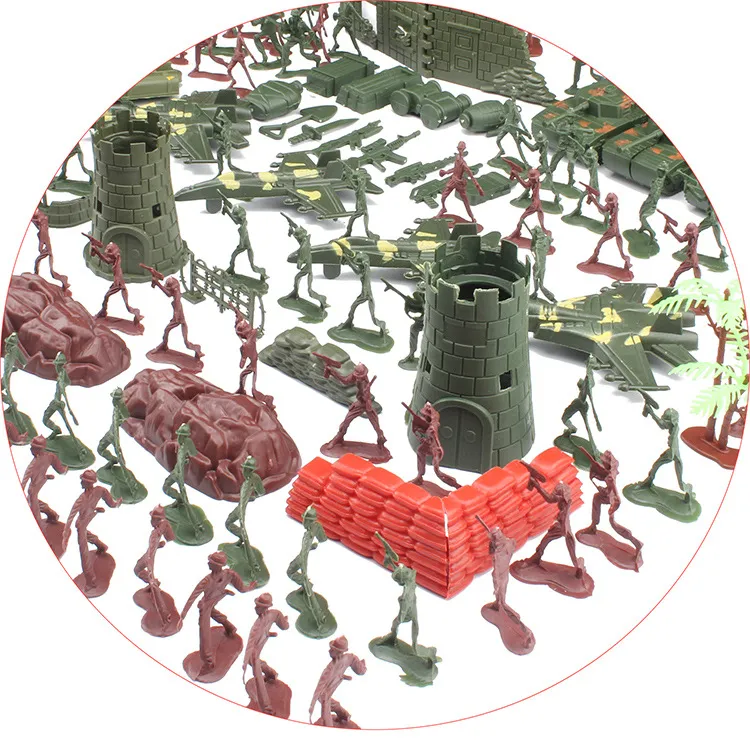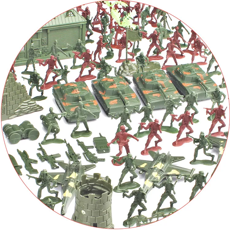 The set contains: 240 soldiers of 4cm (2 colors, random styles), 4 small tanks, fighters, flags, sandbags, stones, and small trees, 3 artillery buildings, 2 boats, 1 radio station, 3 walls, small There are 2 bunkers, 1 fence, and 14 other small equipment. (There are many types of stones, fighter planes and flags, randomly matched)