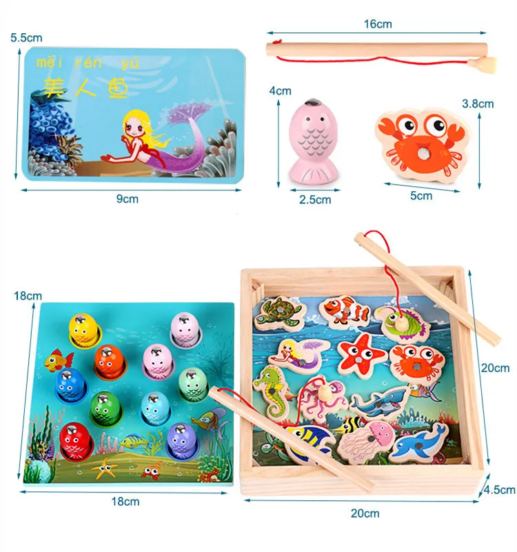 Children's Wooden Magnetic Fishing Girl Boy Baby Educational Toy