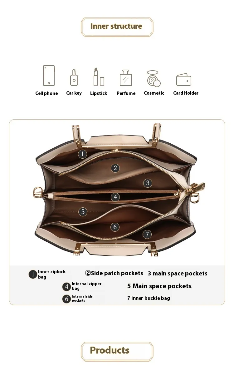 The large capacity of the bag offers ample space for your everyday essentials, such as your laptop, wallet, phone, makeup, and more. The well-organized interior ensures that you can carry everything you need while maintaining a sleek, stylish appearance. Whether you’re heading to work or a weekend getaway, this bag is the perfect size for practical use without sacrificing style.