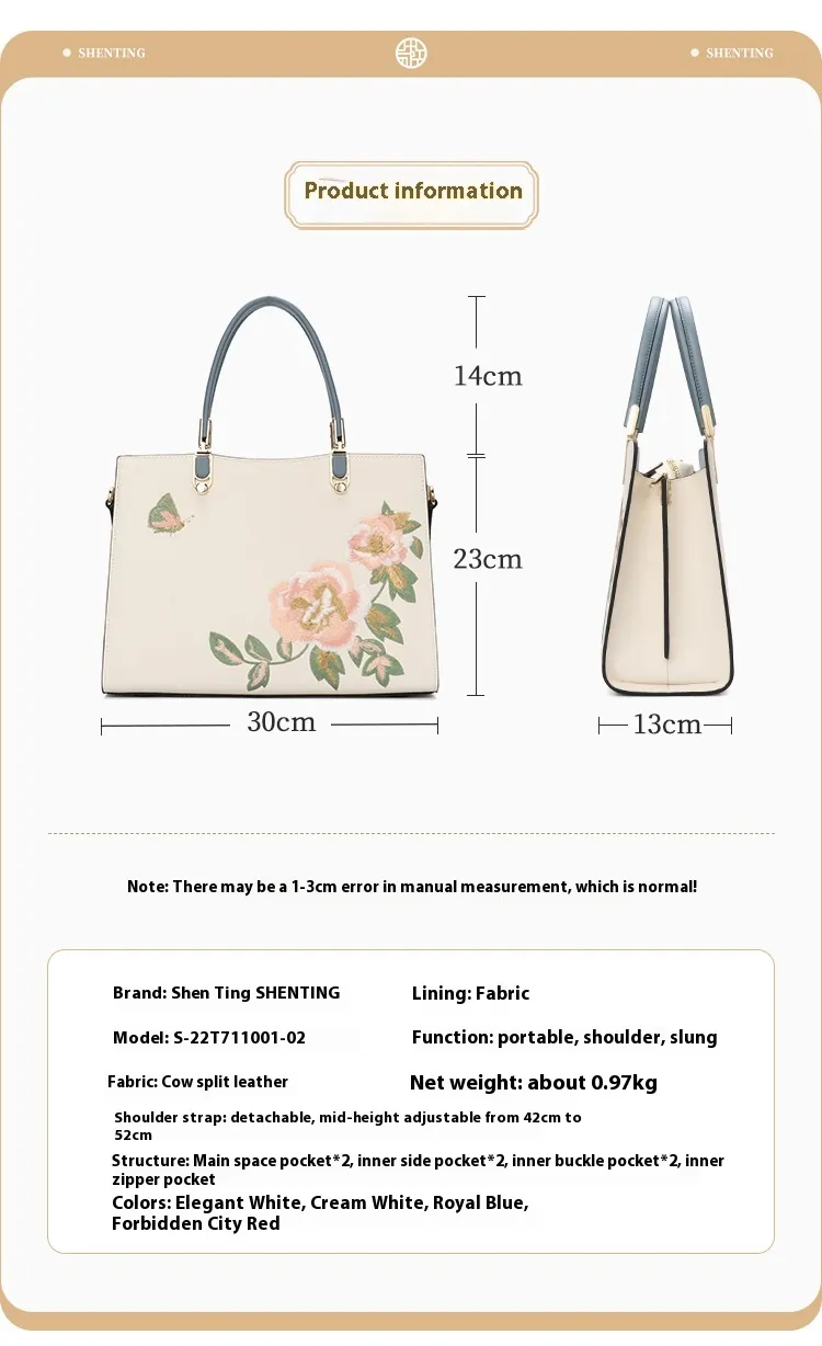 For New Zealand women, the Chinese Peony Butterfly Leather Graceful and Fashionable Large Capacity Embroidery Texture Diana Bag offers a perfect blend of style, functionality, and luxury. Whether you're in Auckland, Wellington, or Christchurch, this bag complements both professional and casual styles while offering the practicality you need for daily use.