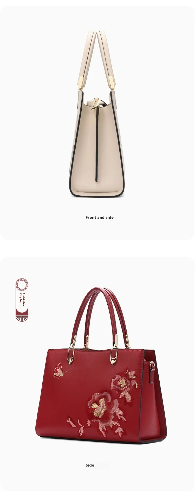 Chinese Peony Butterfly Leather Graceful And Fashionable Large Capacity Embroidery Texture Diana Bag