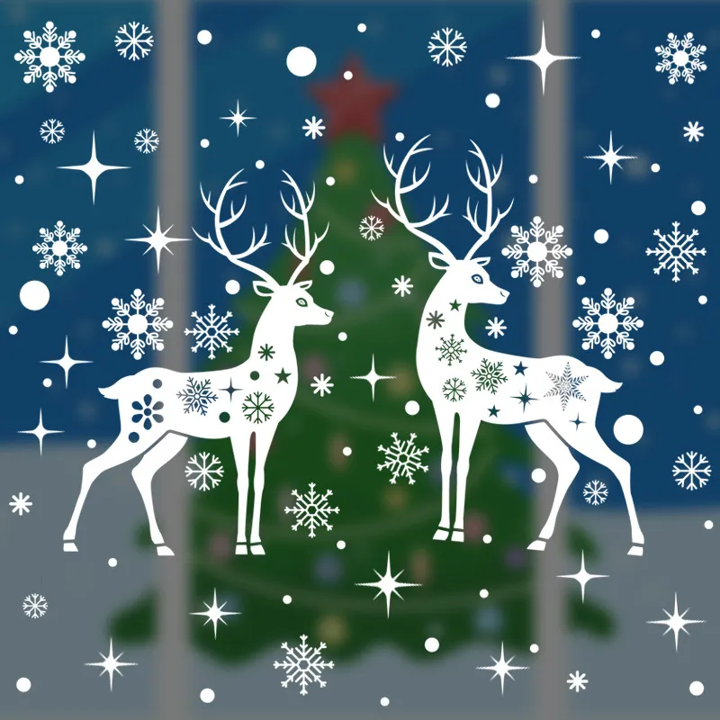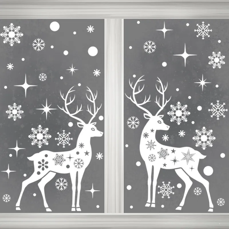Christmas Decoration Elk Static Sticker White Snowflake Stickers Christmas Window