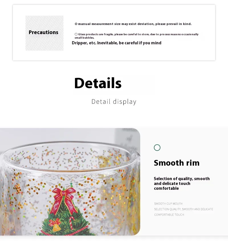 Whimsical Christmas Tree Design: Shaped like a charming Christmas tree, our tumbler embodies the true essence of the holiday season. The whimsical design adds a joyful touch to any gathering, be it sipping on hot cocoa or chilled eggnog. Watch as the glitter flows and sparkles between the double layers, creating a mesmerizing snow globe effect in your cup