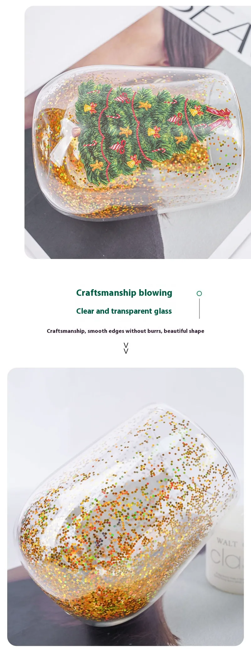 Christmas Tree Cups Heat Resistant Double Layer Flowing Sequins Christmas Cup Household Handwork Cartoon Christmas Trees Tumbler Kitchen Gadgets