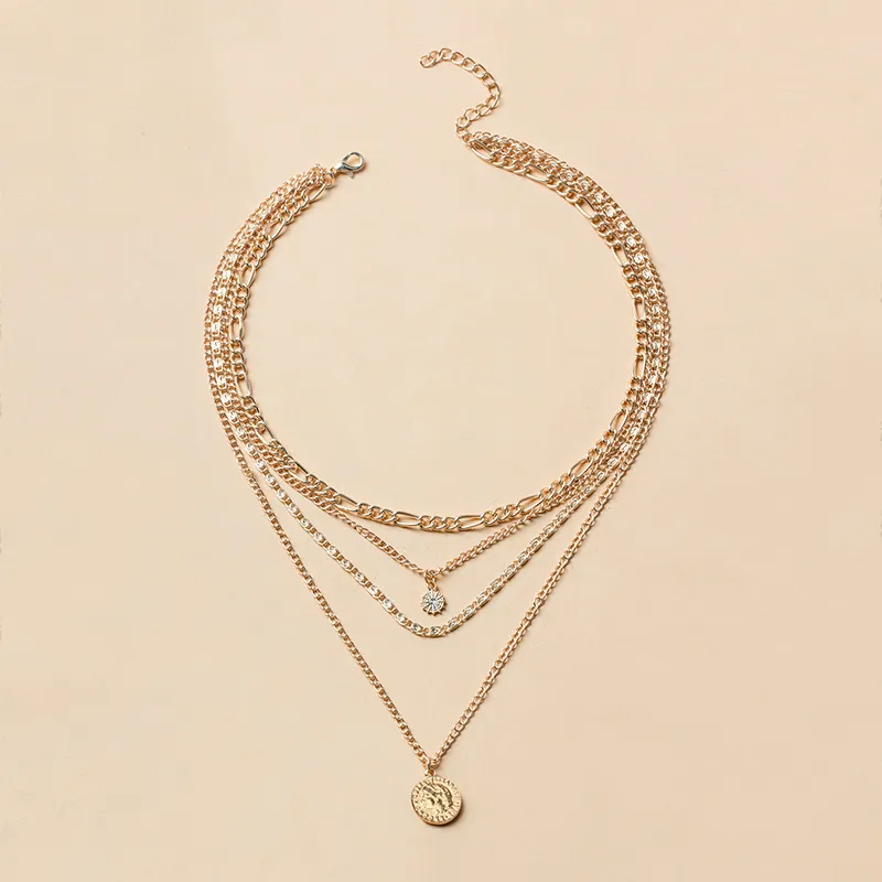 CHUNKY GOLD NECKLACE: The layered coin necklace has a stunning design that looks classic strung along a delicate chain.