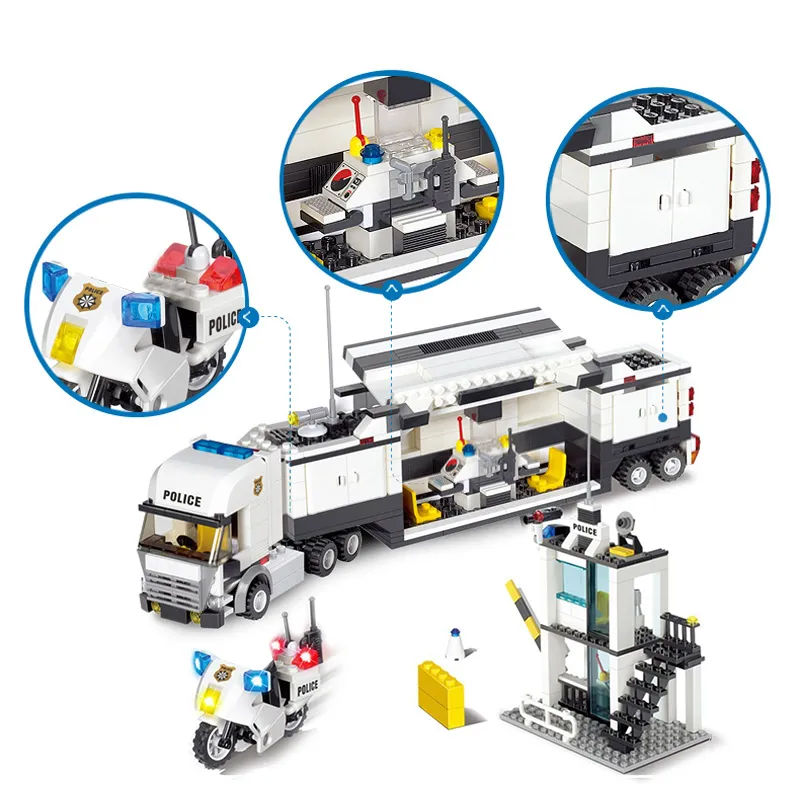 - Building Blocks: Pieces to construct the police station, vehicles, and surrounding accessories.