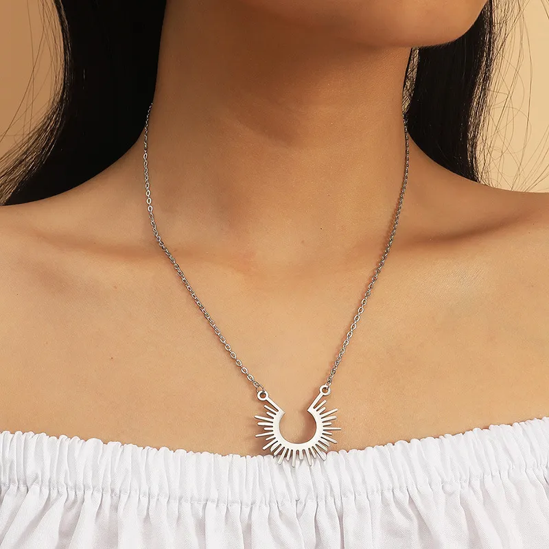Classic semicircle sun flower pendant necklace