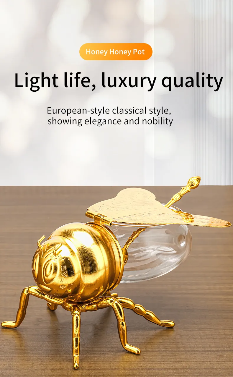 Classical Style Bee Sugar Bowl Seasoning Jar With Spoon Metal Crafts Kitchen Gadgets