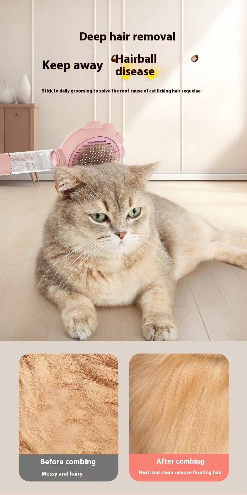 3. Function: Effectively remove floating hair and prevent cats from excessively licking their hair, leading to hairball syndrome, etc.