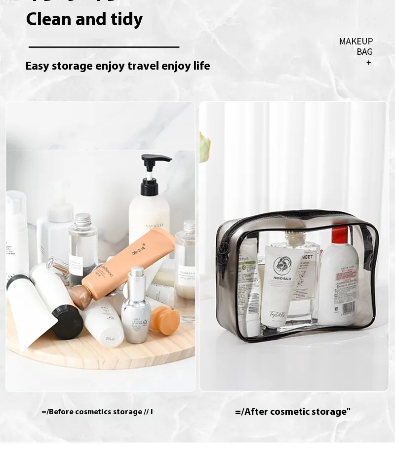 Our clear PVC storage bags are made from durable, high-quality materials designed to withstand everyday wear and tear. The PVC material is both lightweight and strong, providing a sturdy solution for storing a wide range of items. These bags are also resistant to moisture and dust, ensuring that your belongings stay clean and protected over time.