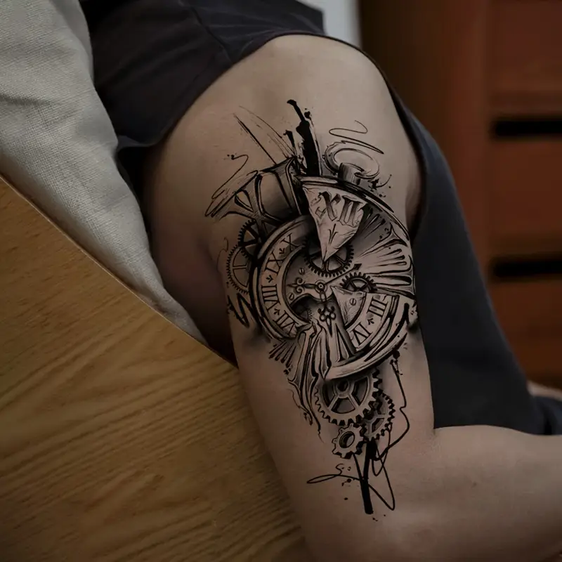 Customize the Design: Work with your tattoo artist to customize the gears, clock faces, and any additional details.