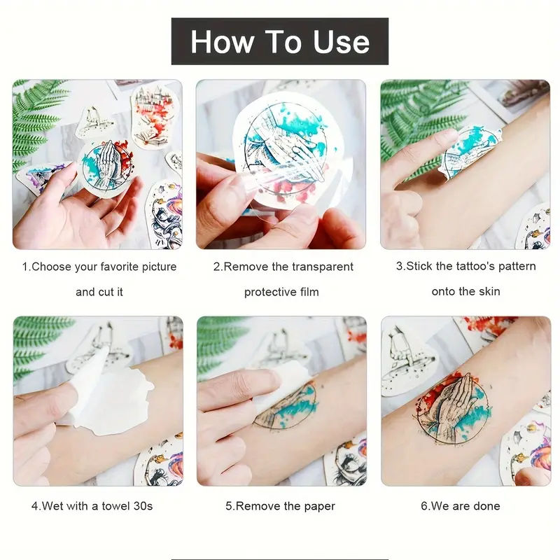2.Printed designed patterns, color bright and looks like real tattoo.