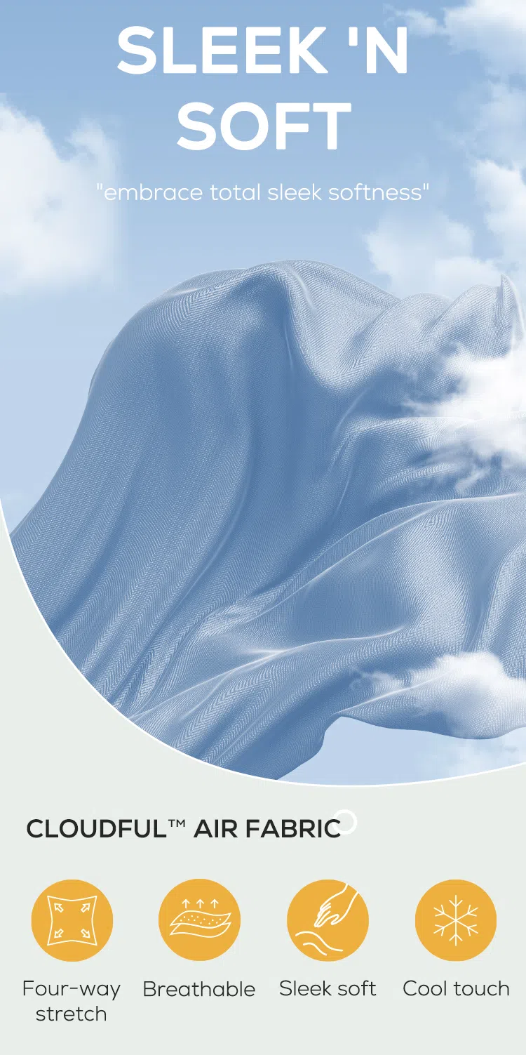 Cloudfulâ„¢ Air Fabric. It is soft to the touch, moisture-wicking, and feels sleek on your skin. Ideal for humid conditions and low-impact activities like yoga, barre, ballet and dance, pilates, golf and other casual activities.