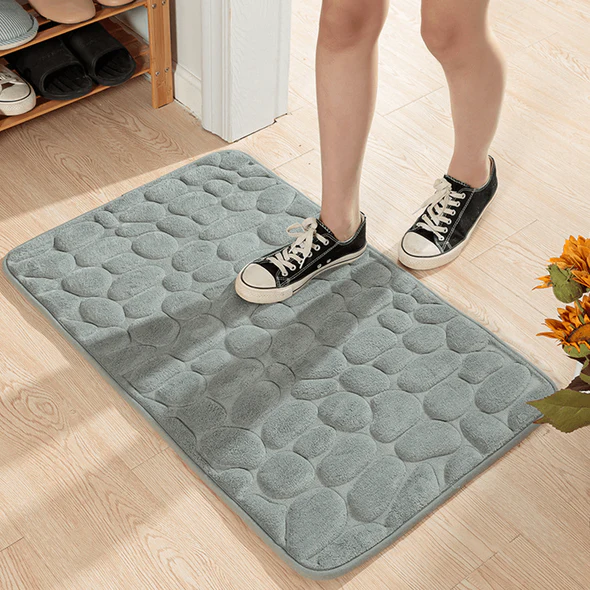 our new Cobblestone Bathroom Mat, you never have to worry about slipping when coming out of your shower! The mat is