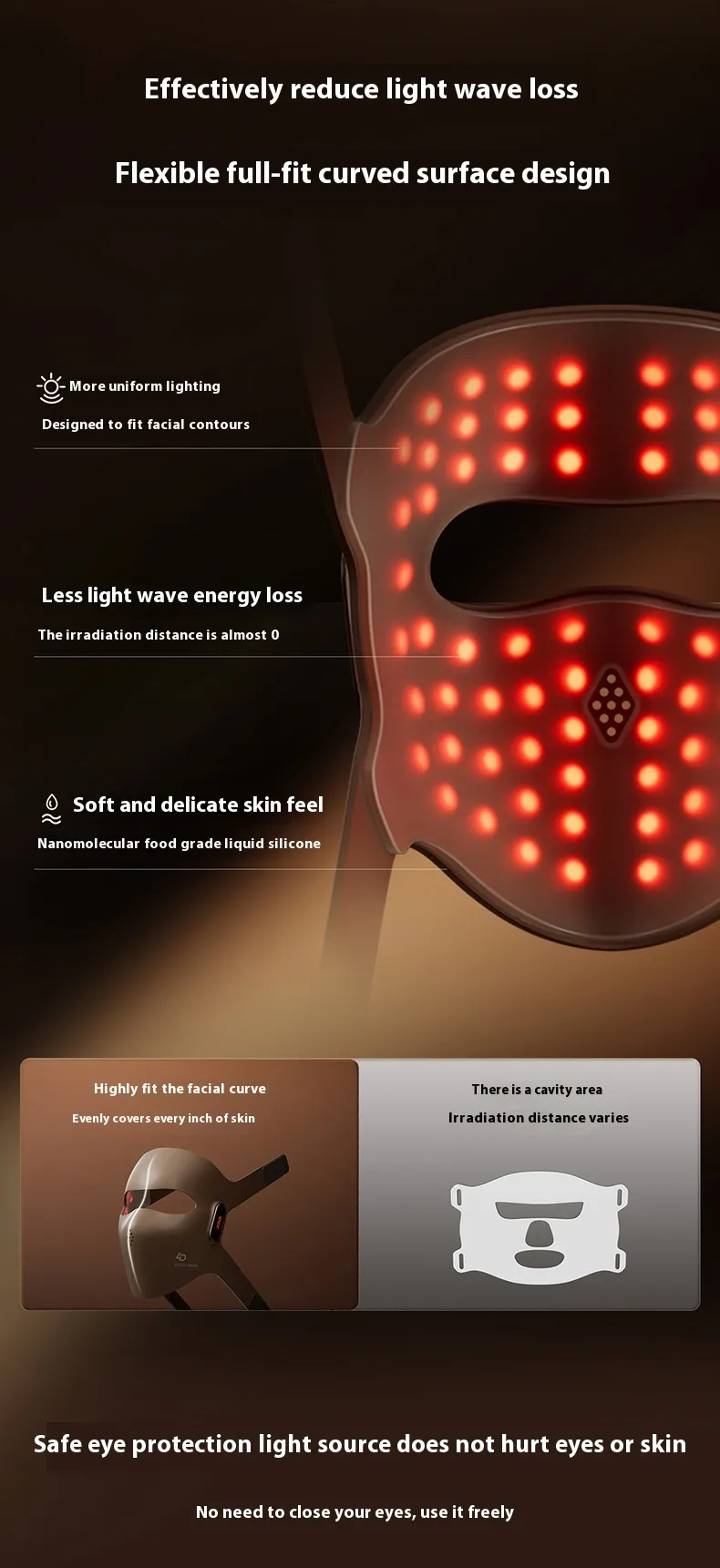 The mask is typically designed to fit comfortably on the face, covering key areas like the forehead, cheeks, chin, and around the eyes. It operates through different light wavelengths, each targeting specific skin concerns, providing a customizable treatment for various skin types.