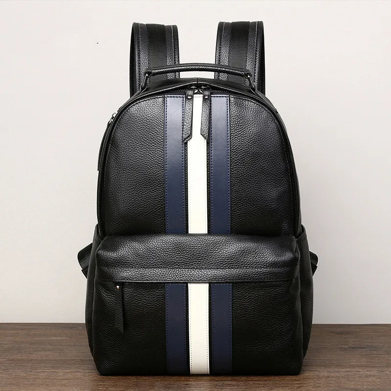 Elevate your travel and everyday style with the Color Contrast Casual Men’s Travel Leather Backpack. Combining high-quality leather with a