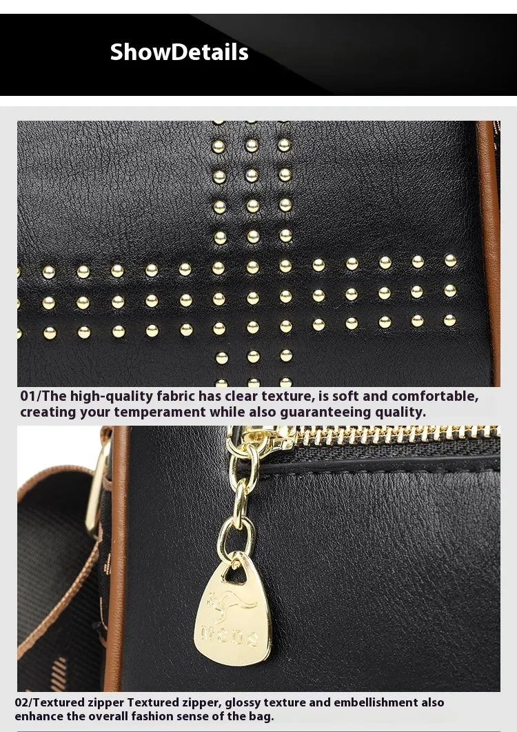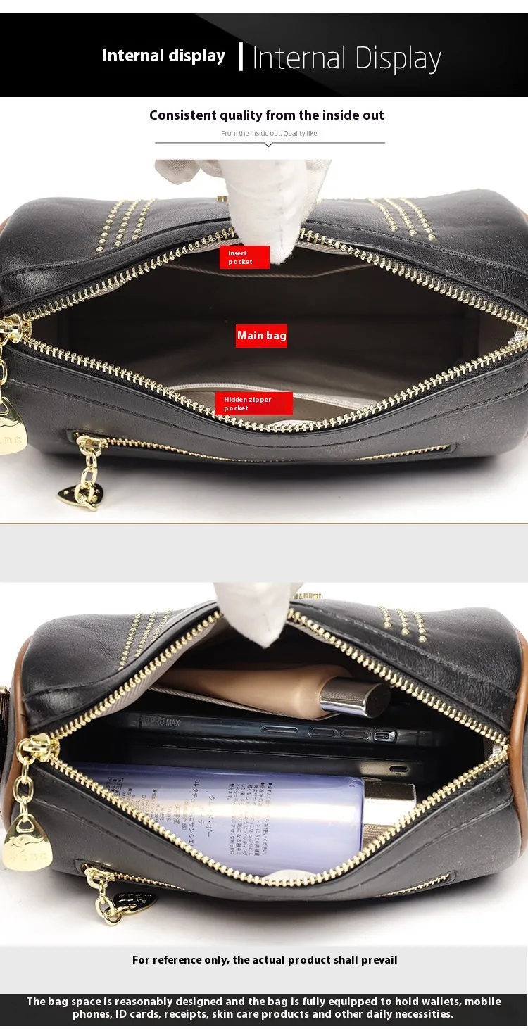 Key Features of the Color Contrast Patchwork Rivet Crossbody Soft Leather Shoulder Bag