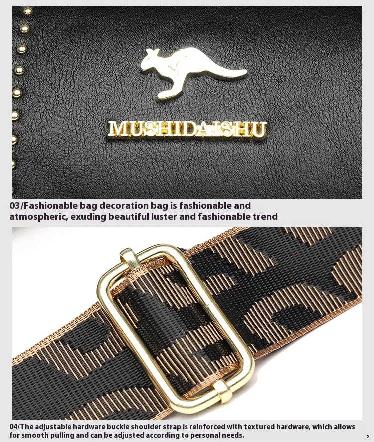 - Fashion-Forward Design: The bold color contrast patchwork and rivet detailing make this bag a statement piece that will turn heads wherever you go.