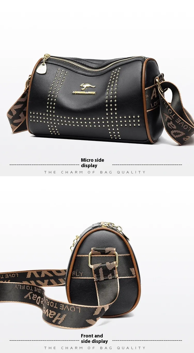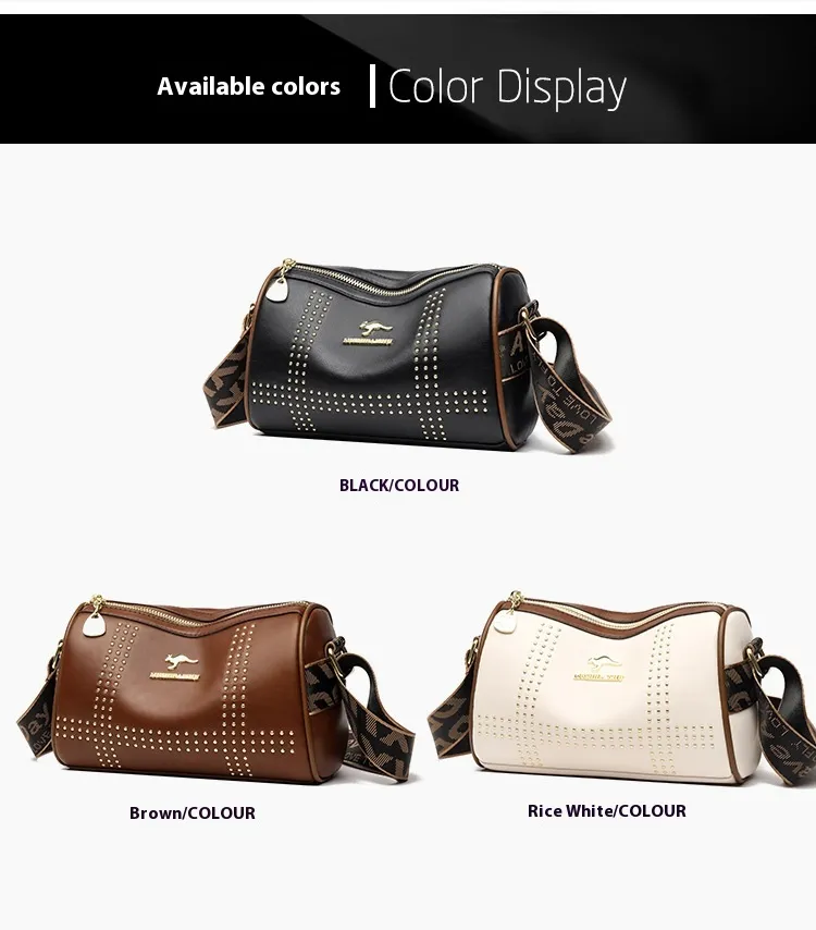 Why Choose the Color Contrast Patchwork Rivet Crossbody Soft Leather Shoulder Bag?