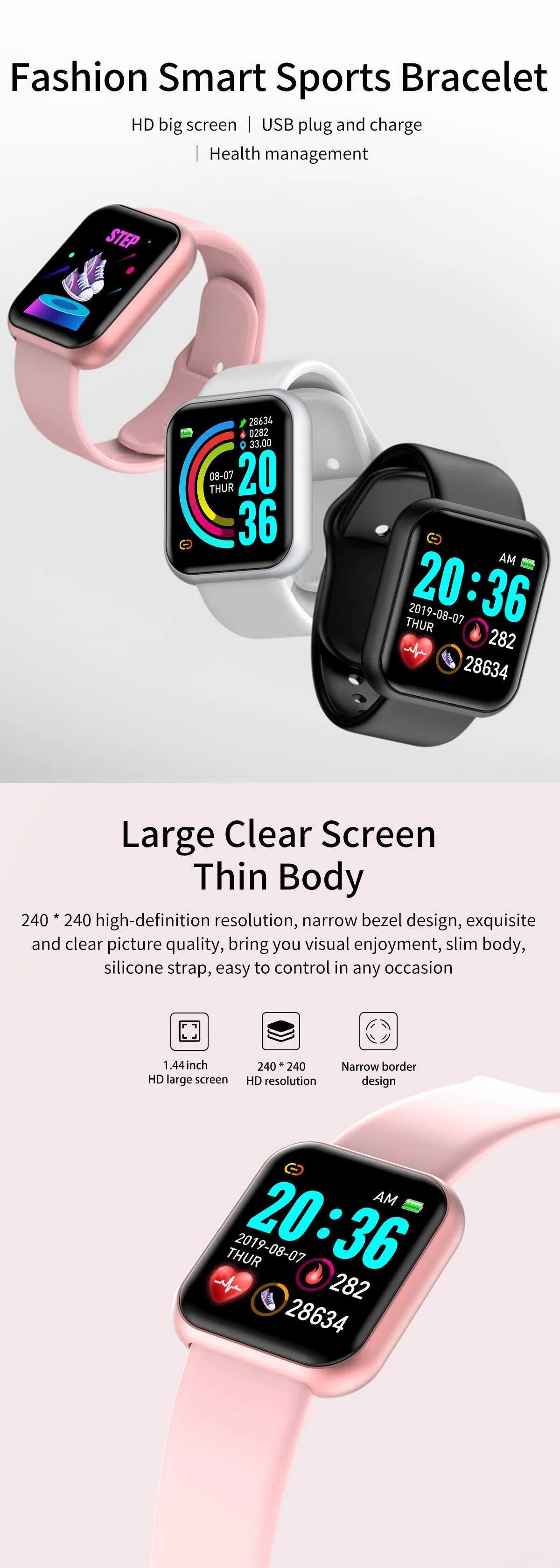 Color: black, white, pink, silver