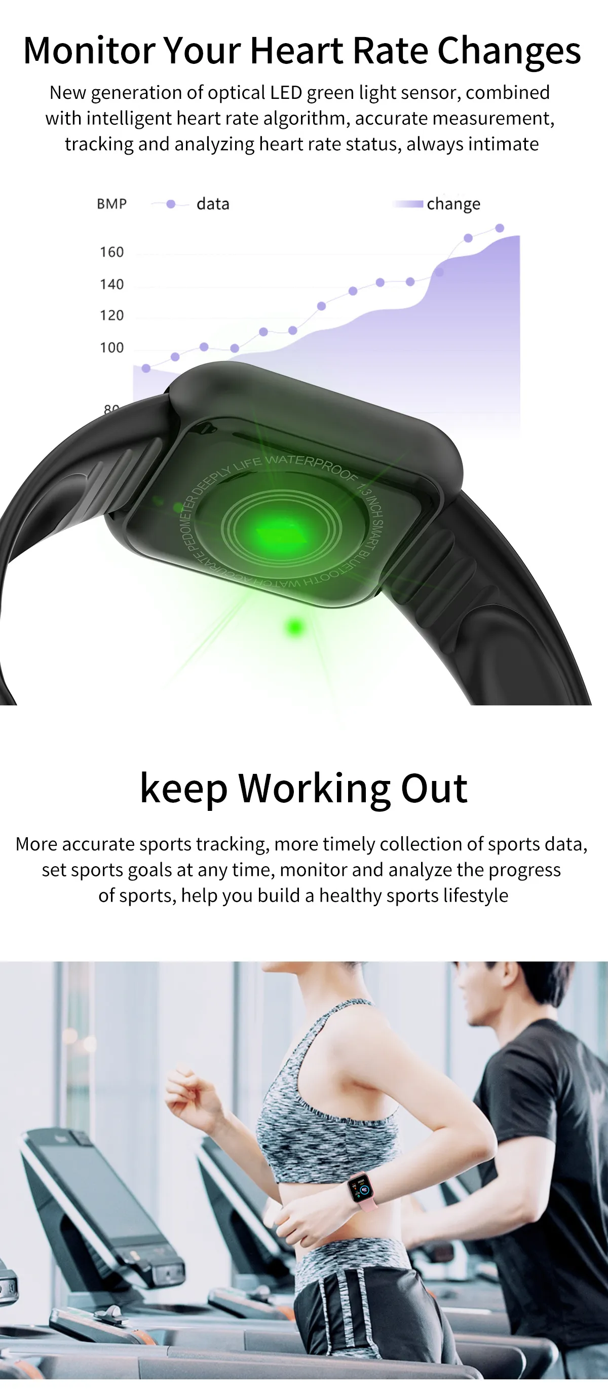 tracking/alarm, sports tracking, sleep analysis