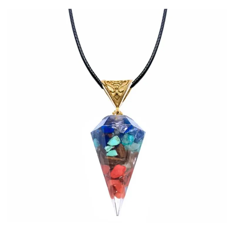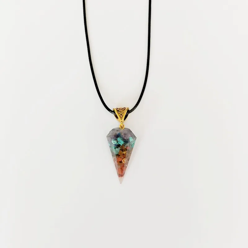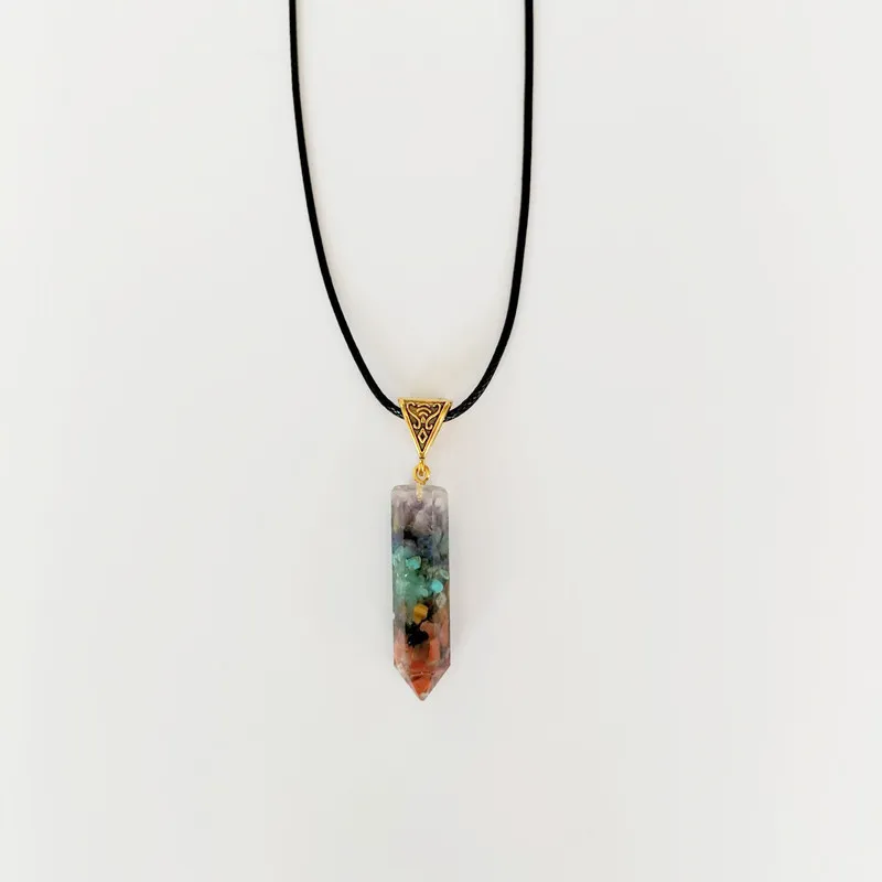 Colorful Crystal Agate Semi-precious Stone Hexagonal Cone Necklace