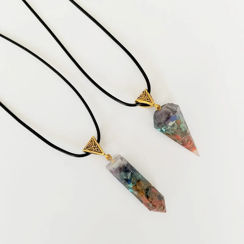 Colorful Crystal Agate Semi-precious Stone Hexagonal Cone Necklace