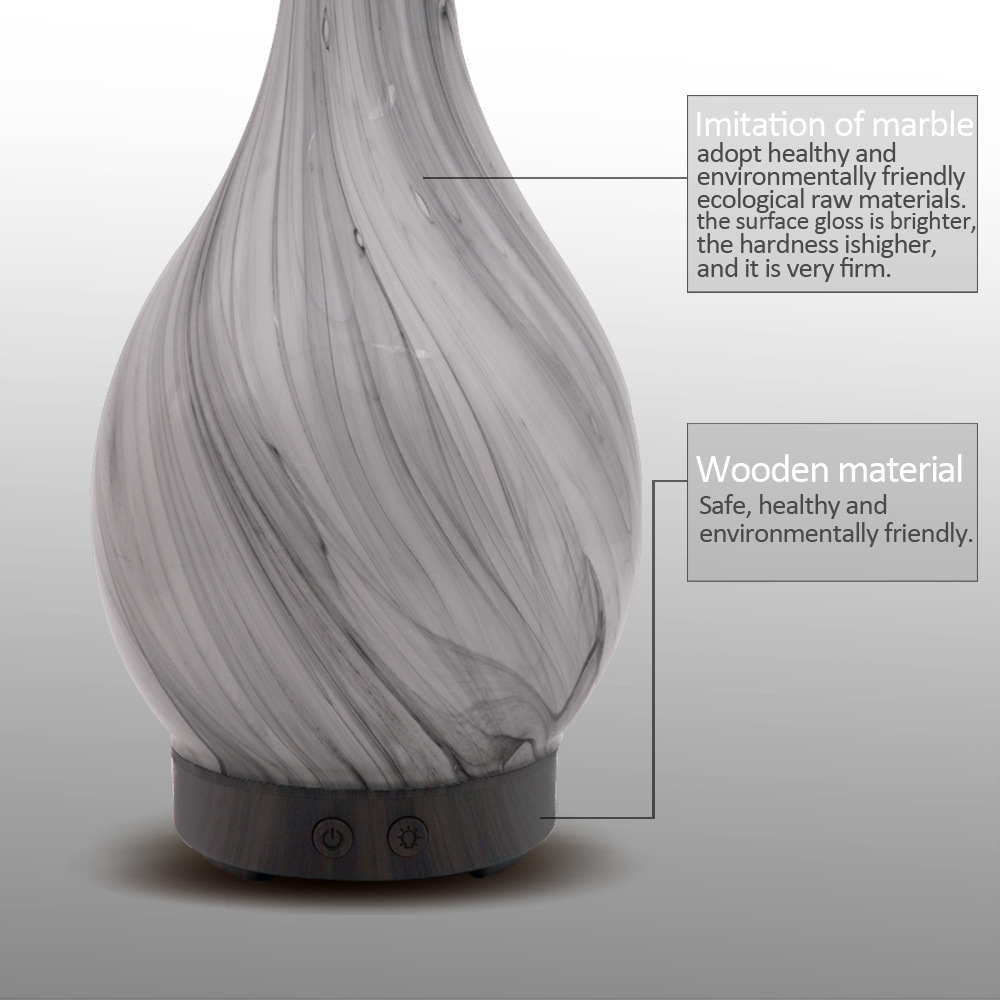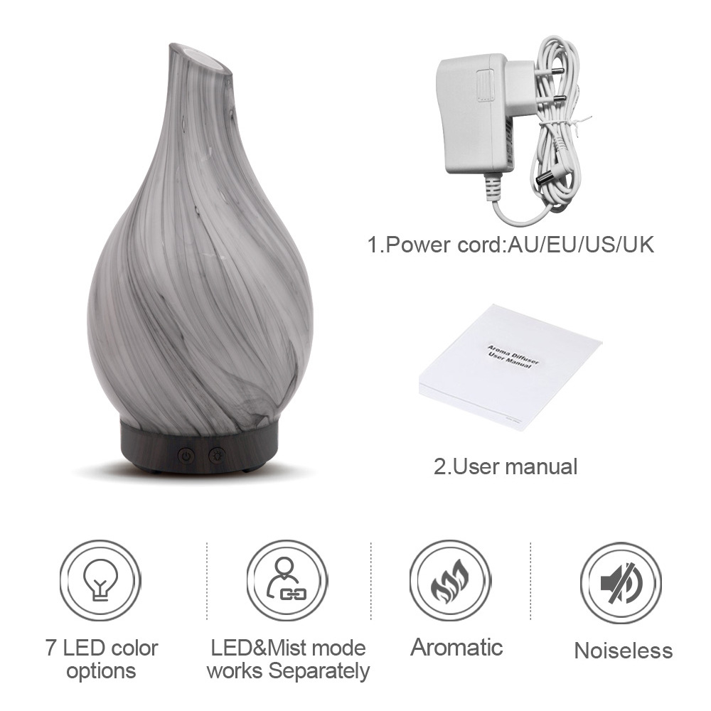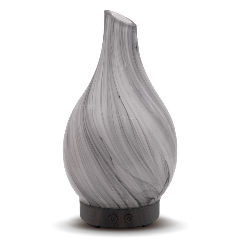 atmosphere. It typically features a sleek, modern design with an array of LED lights that cycle through various colors, creating a calming and visually appealing ambiance. The machine uses ultrasonic technology to disperse a fine mist of water and essential oils into the air, promoting relaxation and well-being.