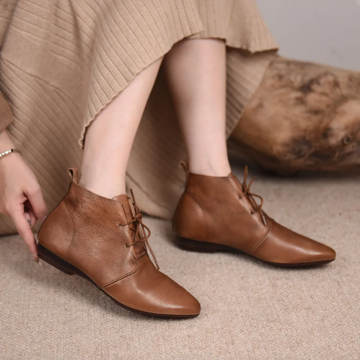 Comfortable Soft Leather Versatile Flat Booties