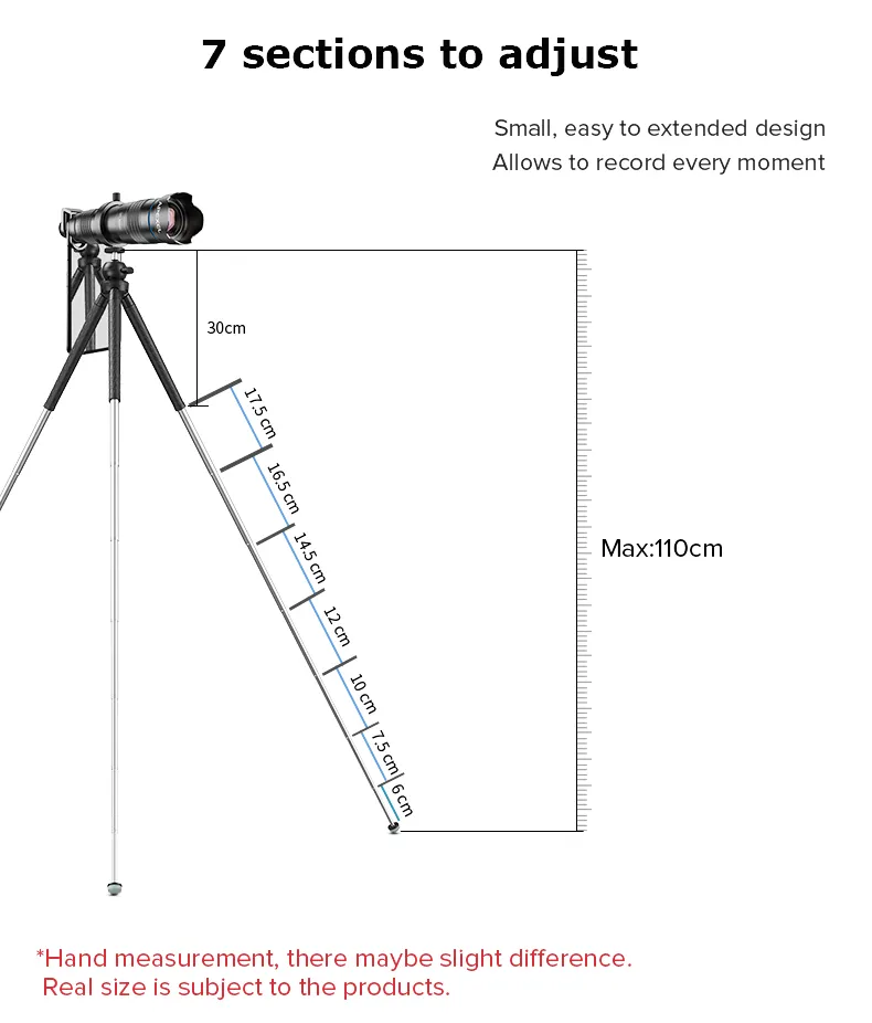 1. The 7-segment foot tube can quickly collect and spend, the total length can reach 110CM, and the foot tube can quickly collect and spend,