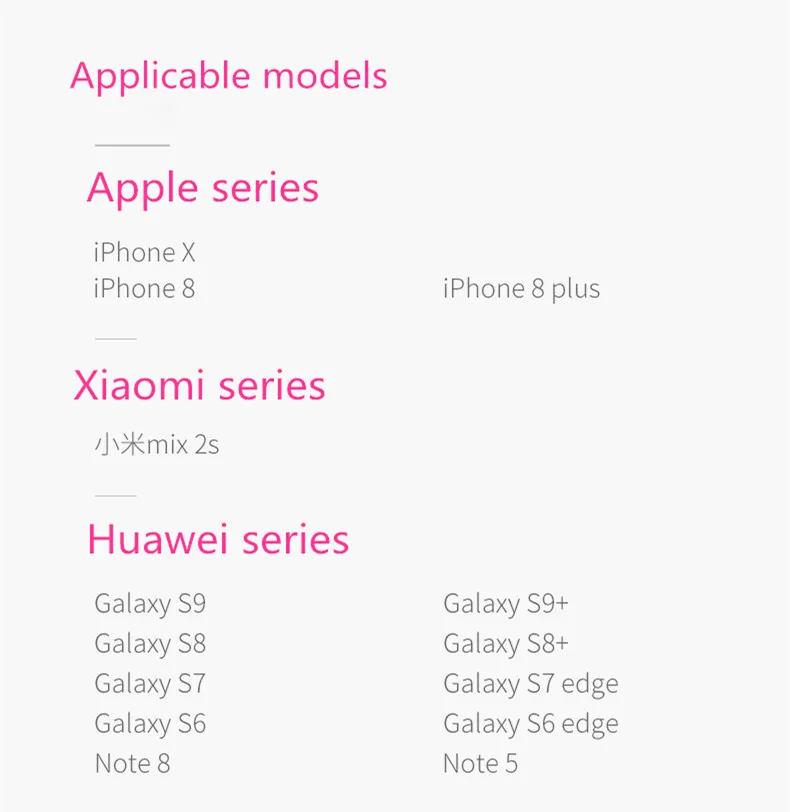 Note: Support mobile phones with wireless charging function or built-in wireless charging ring,