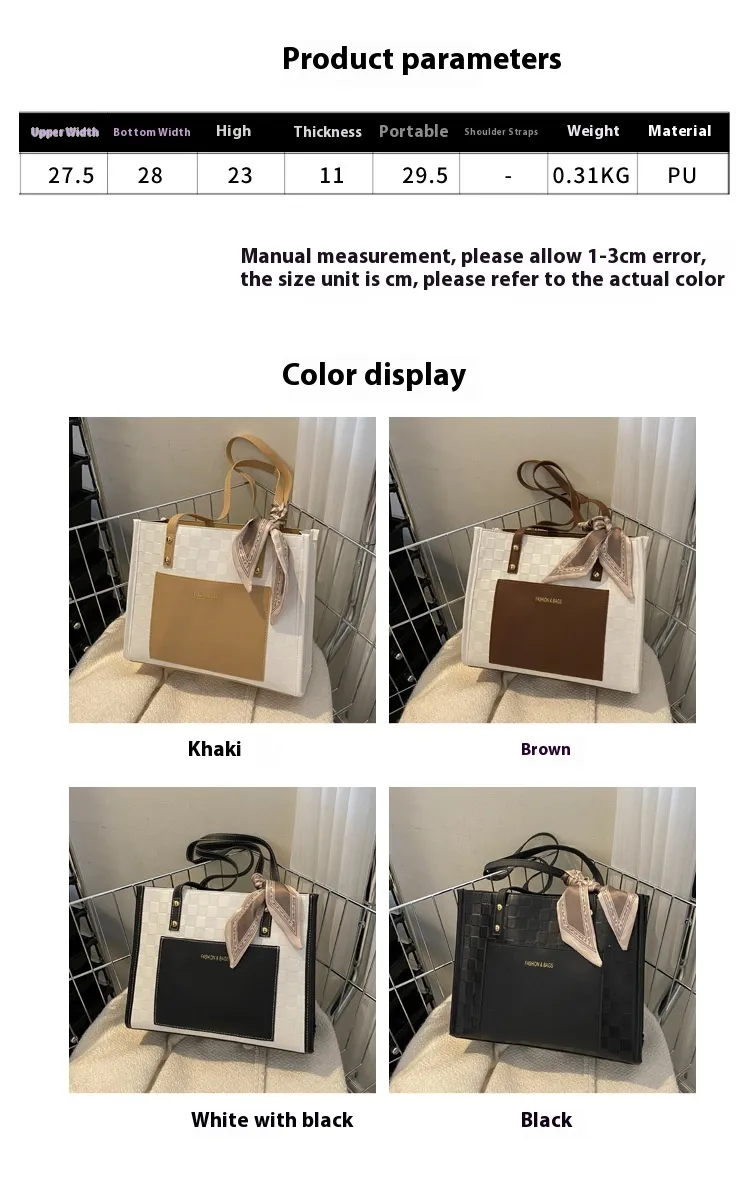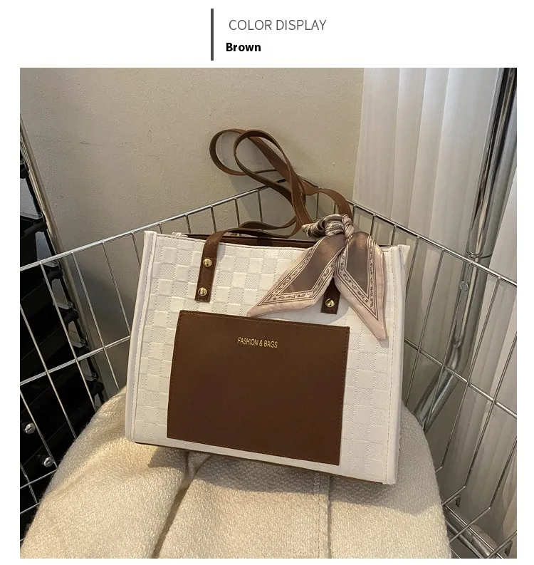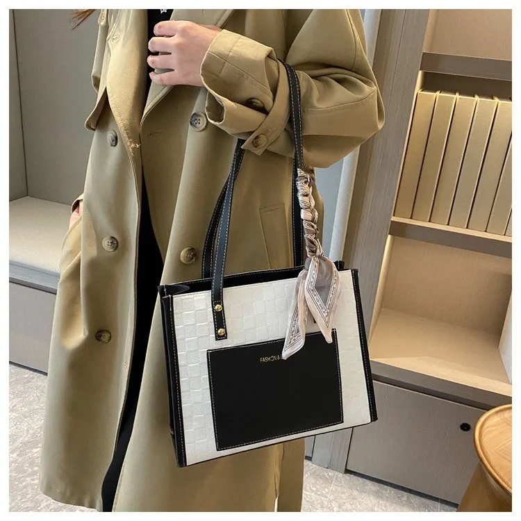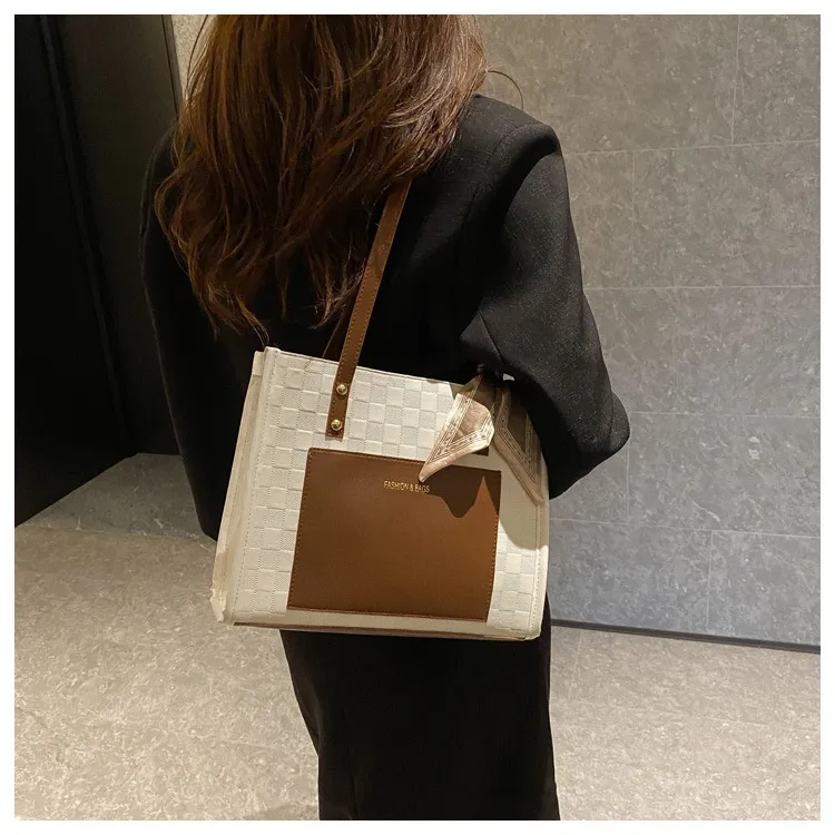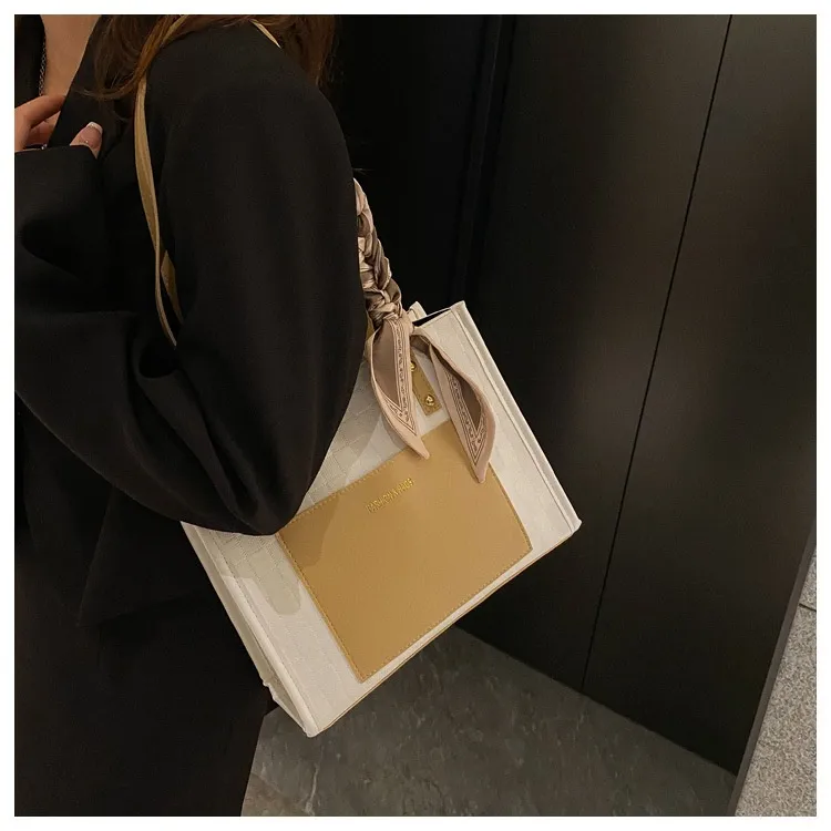 Contrast Color One Shoulder Underarm Tote Big Bag Korean Style Fashion Crossbody