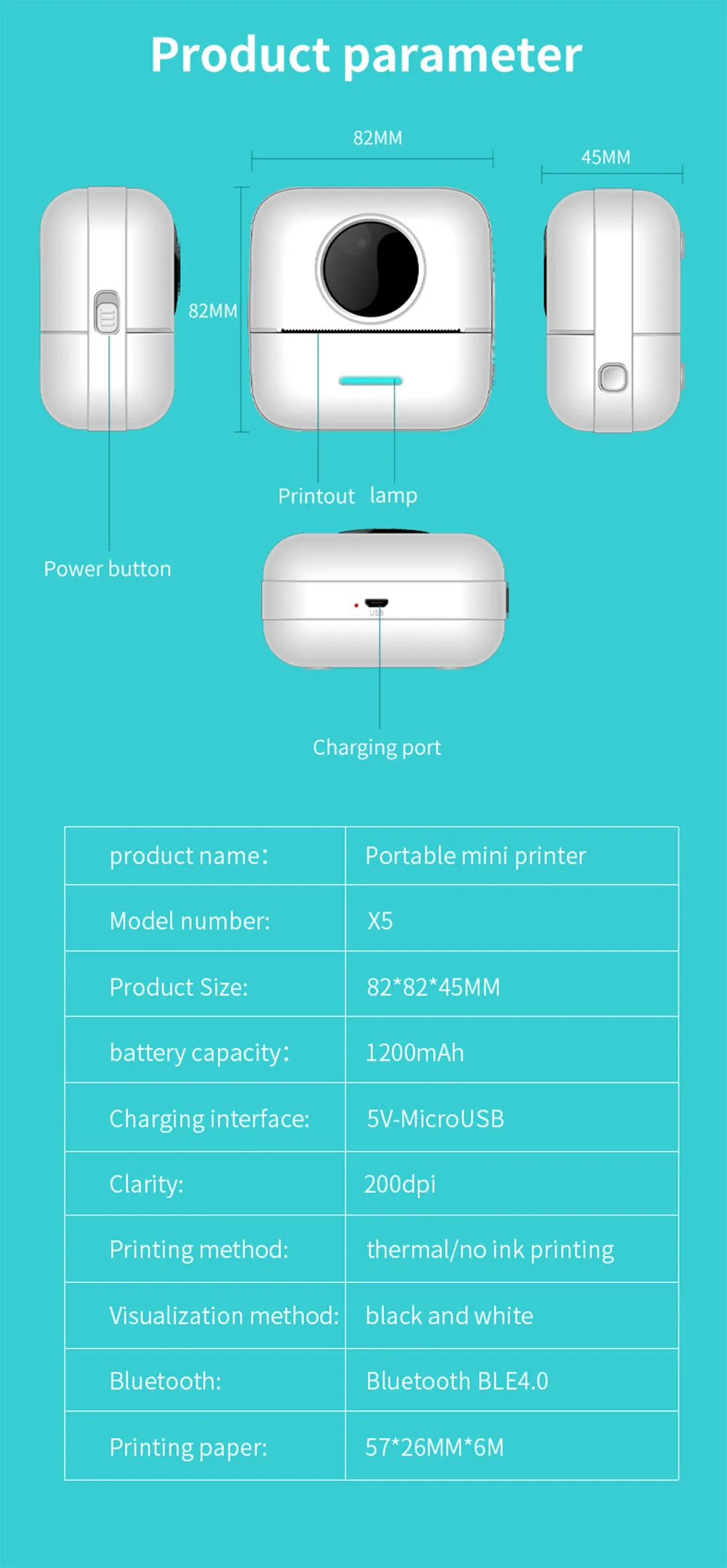 Thermal printing technology: The use of advanced thermal printing technology, no ink cartridge or ribbon, save money and effort.