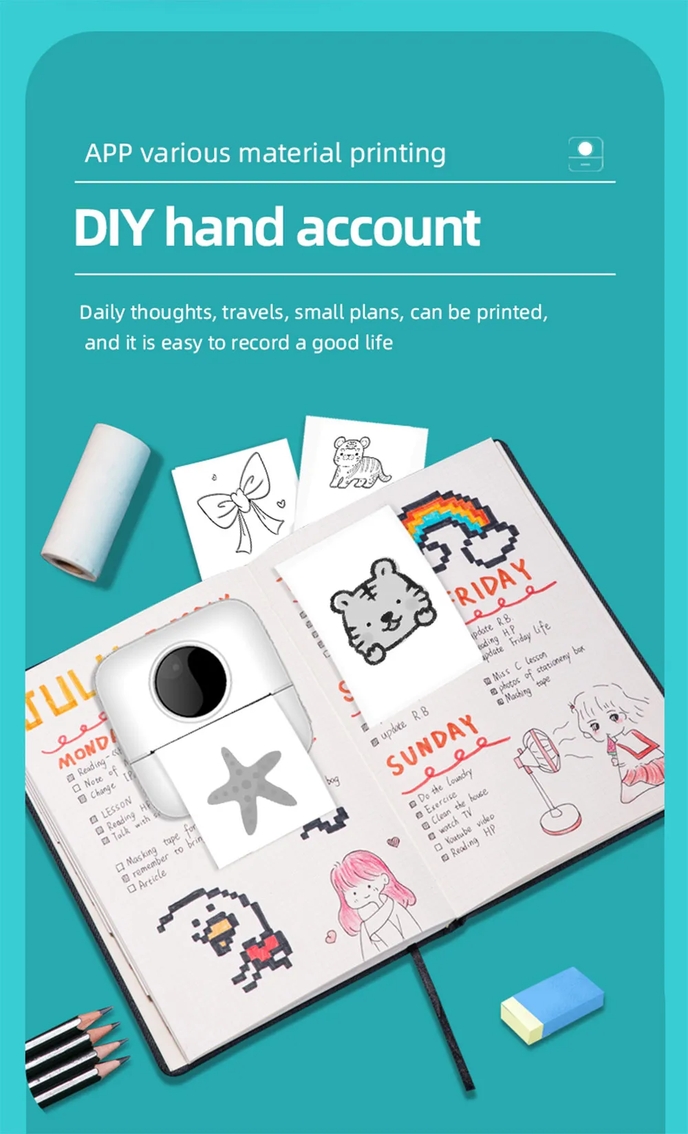 The mini pocket printer is suitable for a variety of printing needs, offering ultimate convenience whether you need to print schoolwork, business documents, or personal prints.