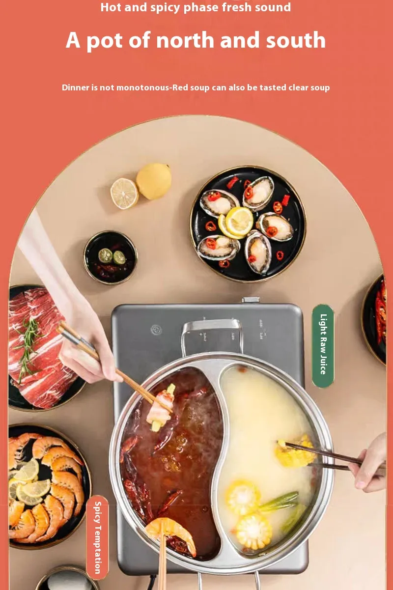 The Cooking Pot with Divider ensures that different dishes are cooked separately, preventing flavors from mixing. You can cook delicate ingredients like fish in one compartment while preparing a hearty stew or soup in another, maintaining the integrity of each flavor. This is perfect for families or individuals who prefer separate flavors or those with dietary restrictions.
