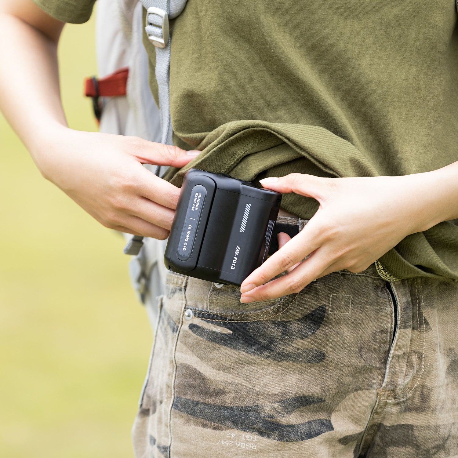The CoolClip™ works by clipping on your waist and circulates air in your shirt. The wind inside your shirt will draw heat away from the skin, keeping you cooled during the hottest summer days. In fact, you can clip it anywhere you want, and it doubles as a powerful handheld fan.