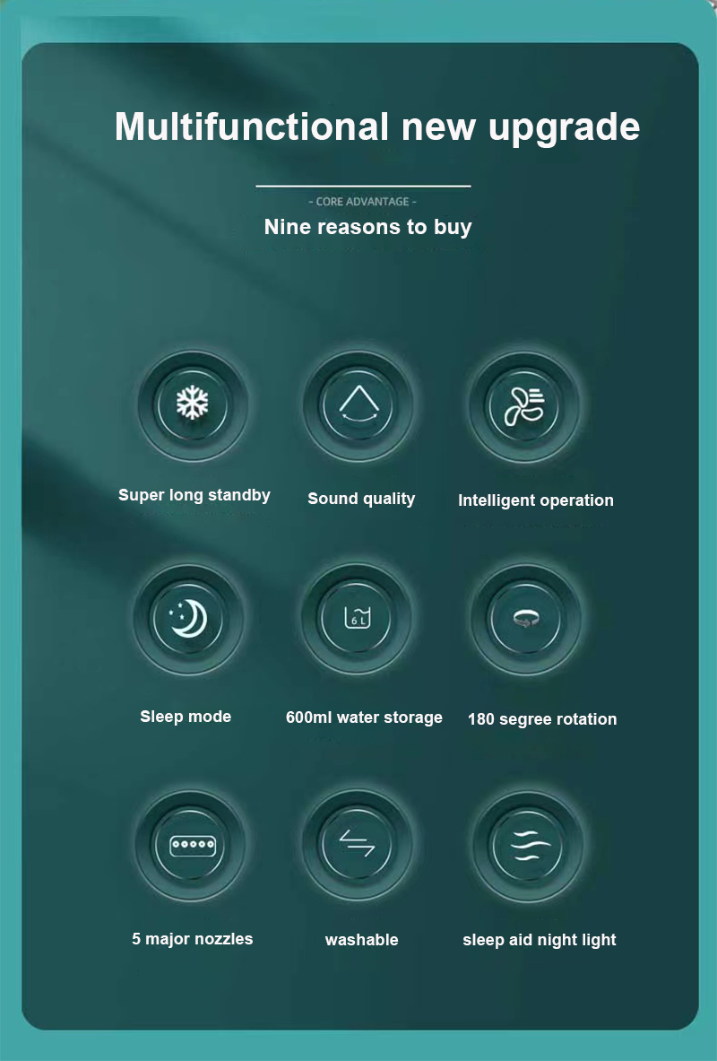 is filled with ice and water, it can spray cold air for 12 hours to keep your body cool and make you