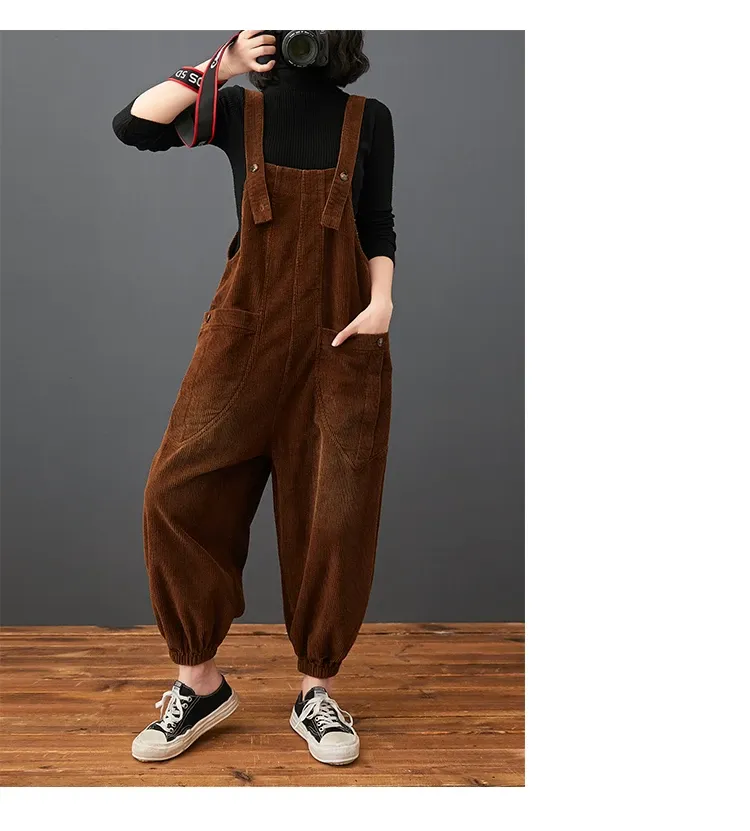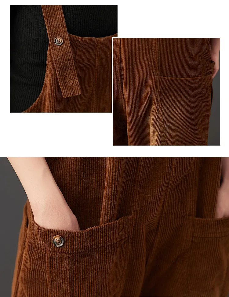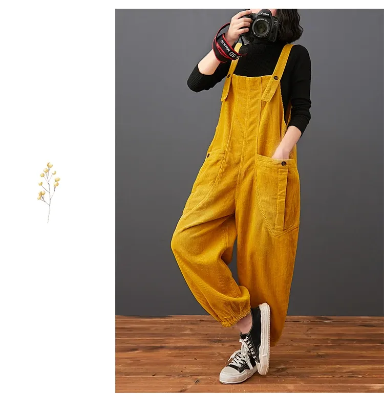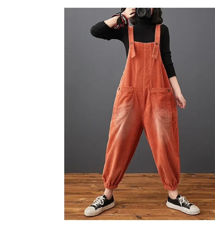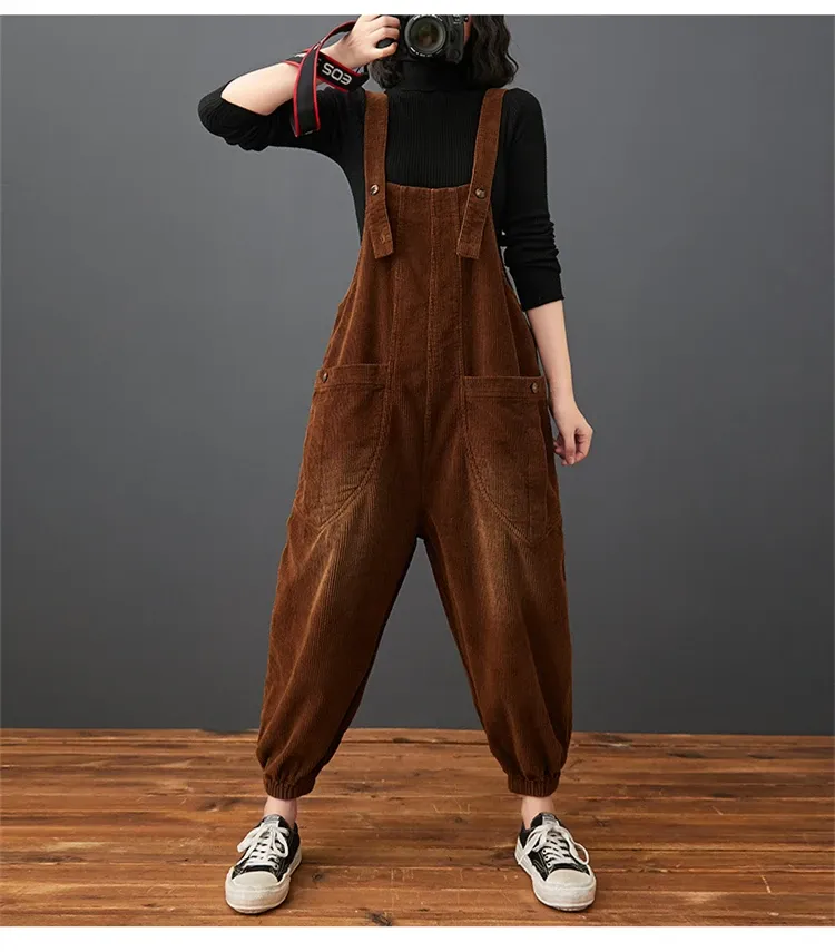 Corduroy Large Pocket Age Reduction Plus Size Overalls