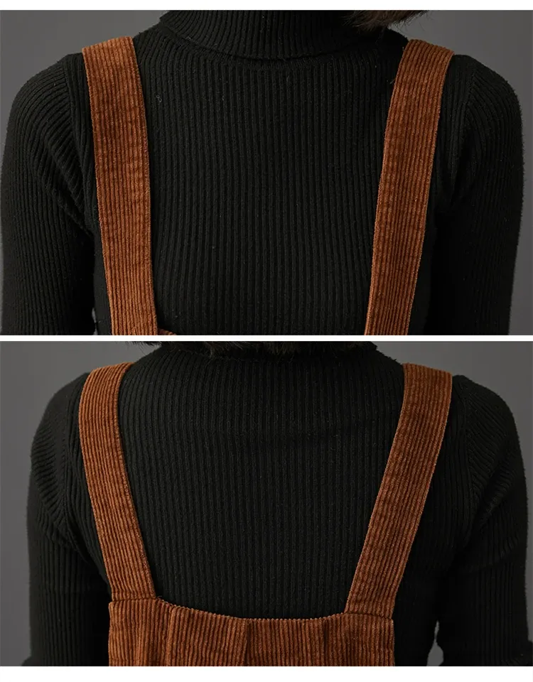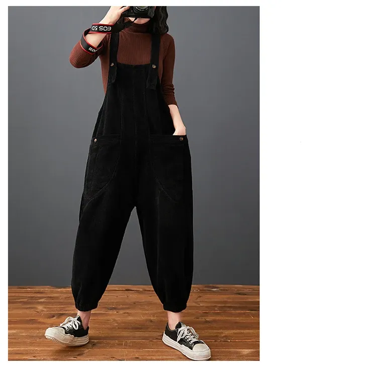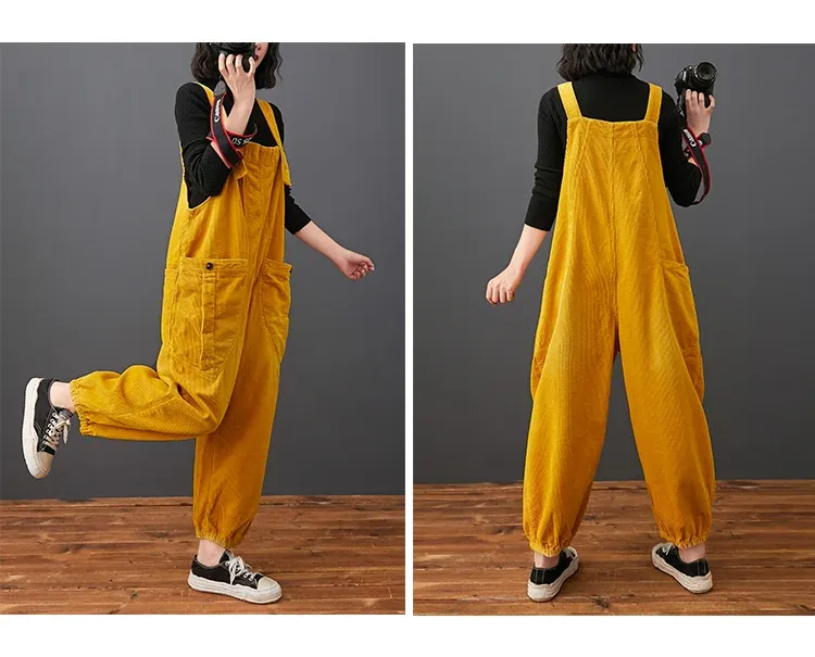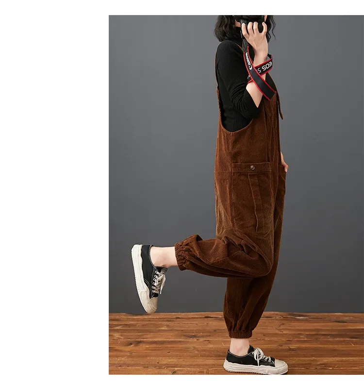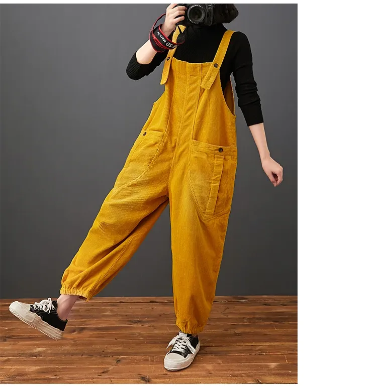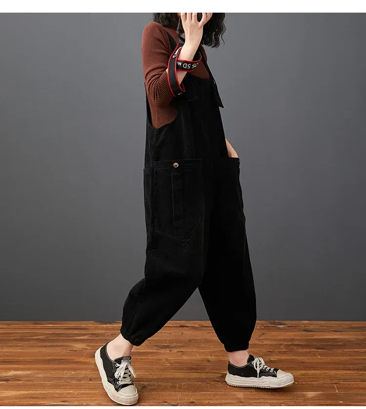 Corduroy Large Pocket Age Reduction Plus Size Overalls